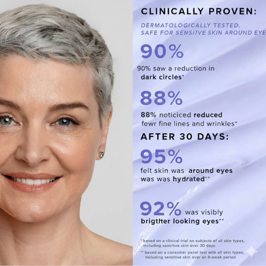 Created with clinical intention to address the visible appearance of dark circles, puffiness, and fine lines, using a non-invasive, topical cosmetic approach suitable for daily use.